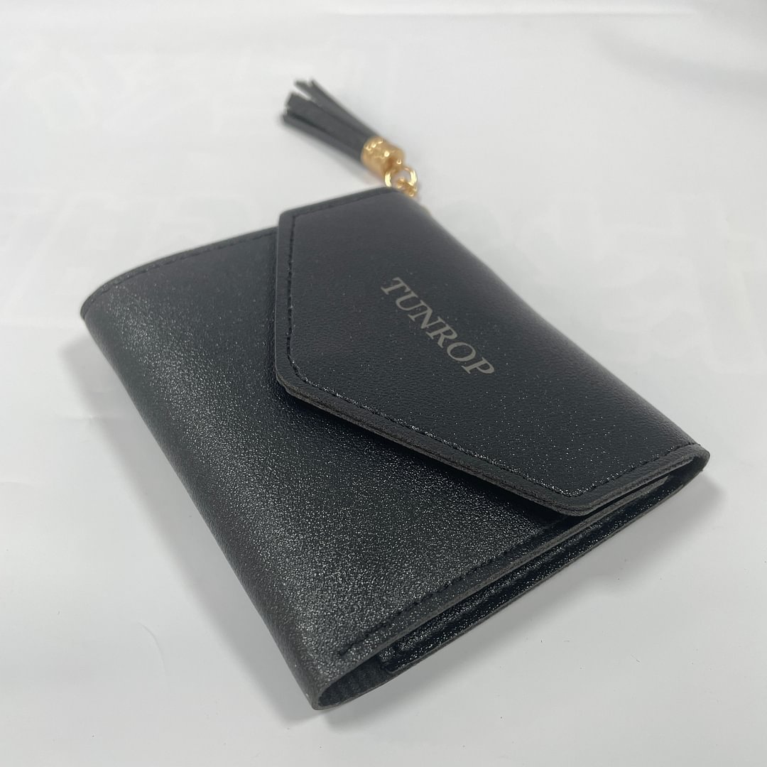 Item: Short Tassel WalletMaterial: PU LeatherWallet Folds: 30%Style: Fresh and SweetPopular Elements: TasselsPattern: Solid ColorModel: Short Tassel WalletLining: Synthetic Leather